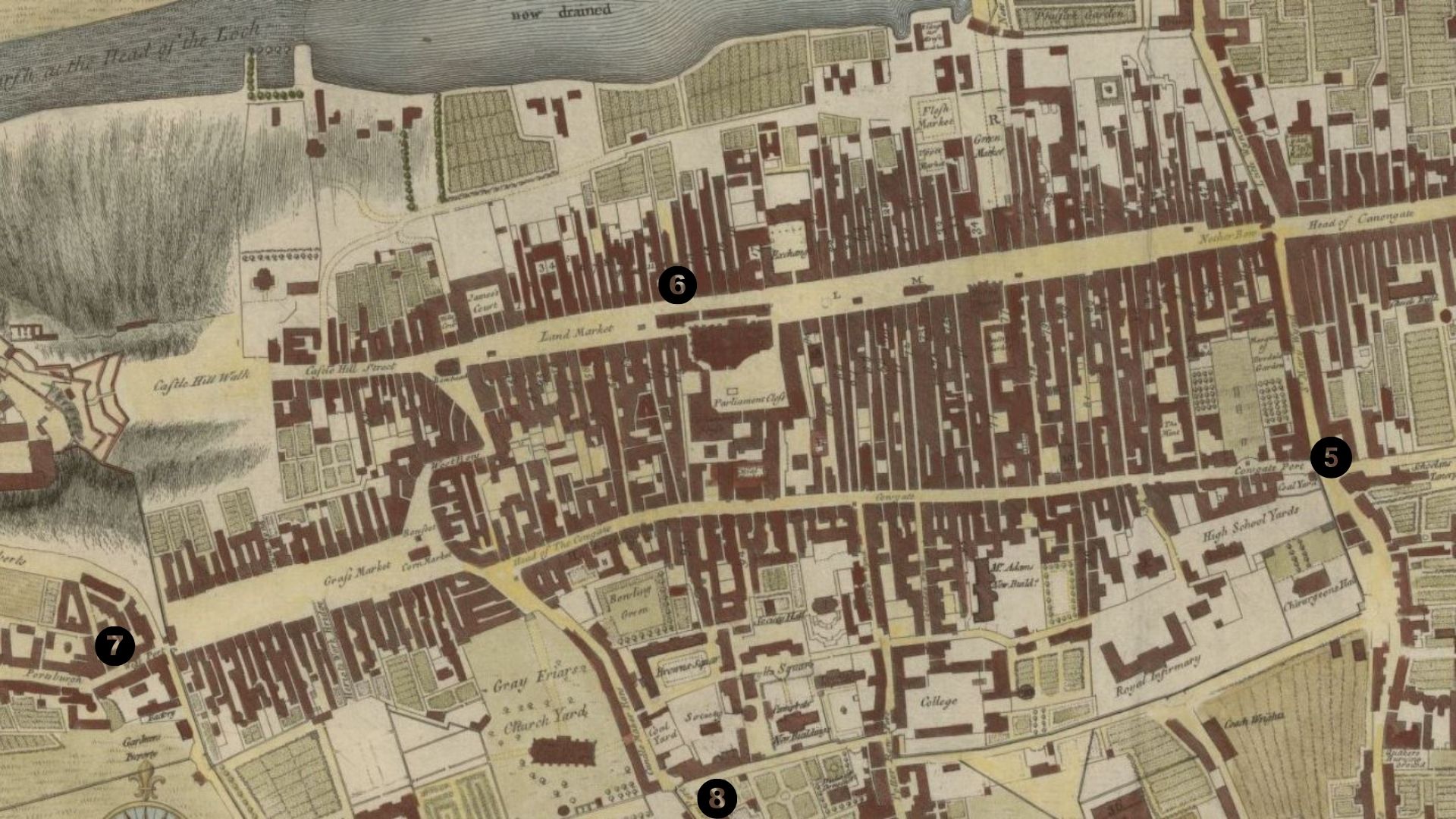 Vuoden 1765 kartta on uudelleenjulkaistu National Library of Scotlandin luvalla. Nyky-Edinburghin kartta on Edinburghin kaupungin kartta-arkistosta.